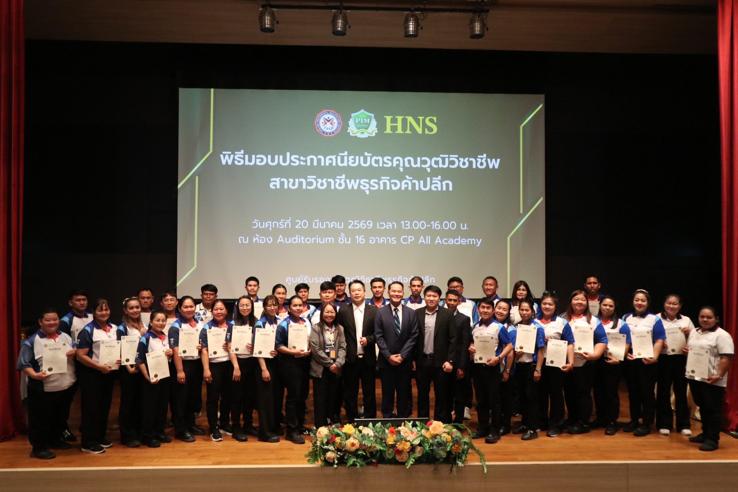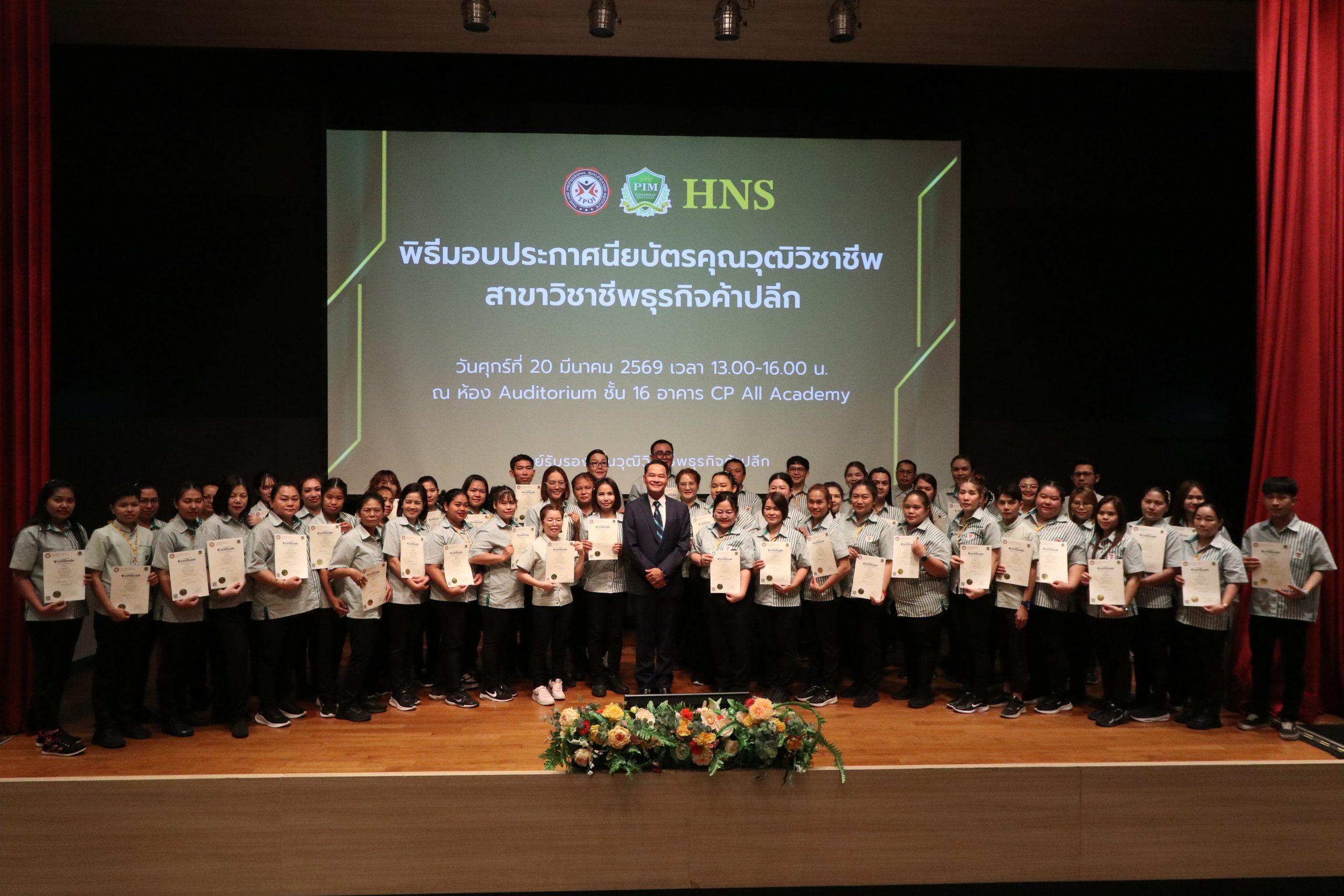 เมื่อวันที่ 20 มีนาคม 2569 บริษัท แฮปปี้ เนสท์ สเปซ จำกัด (HNS) นำโดย คุณชัดชาย แสงอรุณ กรรมการผู้จัดการ พร้อมด้วยคณะผู้บริหาร เข้าร่วมพิธีมอบประกาศนียบัตรคุณวุฒิวิชาชีพ ให้แก่พนักงานของบริษัท HNS ณ อาคาร CP ALL Academy สถาบันการจัดการปัญญาภิวัฒน์ภายในพิธีได้รับเกียรติจาก รองศาสตราจารย์ ดร.สมภพ มานะรังสรรค์ อธิการบดีสถาบันการจัดการปัญญาภิวัฒน์ และ ดร.ณฐา จันทนู รองผู้อำนวยการสถาบันคุณวุฒิวิชาชีพ เป็นผู้มอบประกาศนียบัตรคุณวุฒิวิชาชีพ แก่พนักงานที่ผ่านการพัฒนาและยกระดับทักษะตามมาตรฐานวิชาชีพ โอกาสนี้ คุณชัดชาย แสงอรุณ ได้กล่าวแสดงความยินดีแก่พนักงานที่ได้รับประกาศนียบัตร พร้อมทั้งให้แนวทางในการพัฒนาศักยภาพและการเติบโตในสายอาชีพ ซึ่งมีคณะผู้บริหารและพนักงานบริษัท HNS ได้ร่วมให้กำลังใจและแสดงความยินดีกับพนักงานทุกท่านที่ได้รับประกาศนียบัตรในครั้งนี้ถือเป็นอีกหนึ่งก้าวสำคัญของการพัฒนาบุคลากรและความสำเร็จร่วมกันขององค์กร